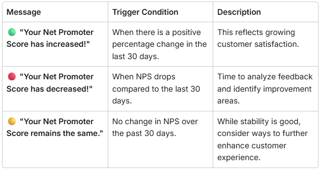 🔵 Trend Chart – Track NPS changes over time for deeper analysis.